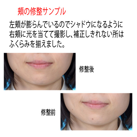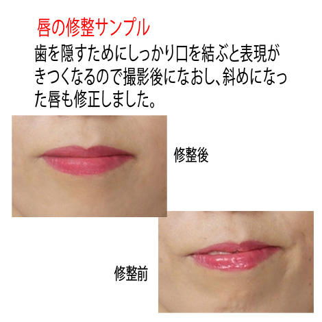 デジ タルで 修整をしますので、顔のシワ、二重アゴ、ニキビ等を消したり直すことも簡単に出来ます。