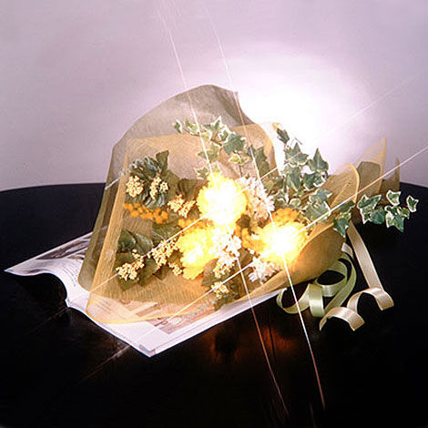 花の中に発光体が入っています、一度に撮ると全体に明るくなるだけなので2重露光で写してあります。