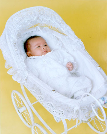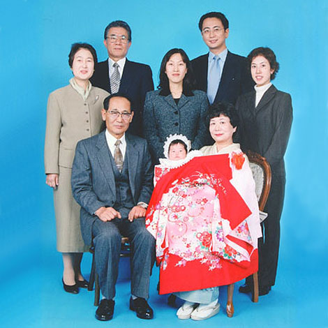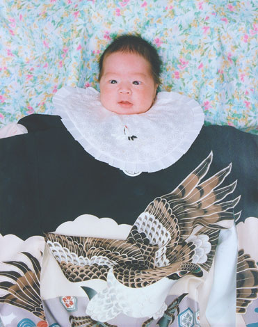 きょうは私のためにパパママの他に両方のおじい様おばあ様も集まってお宮参りの後にお写真をとりました、アッおば様もいらっしゃいました。